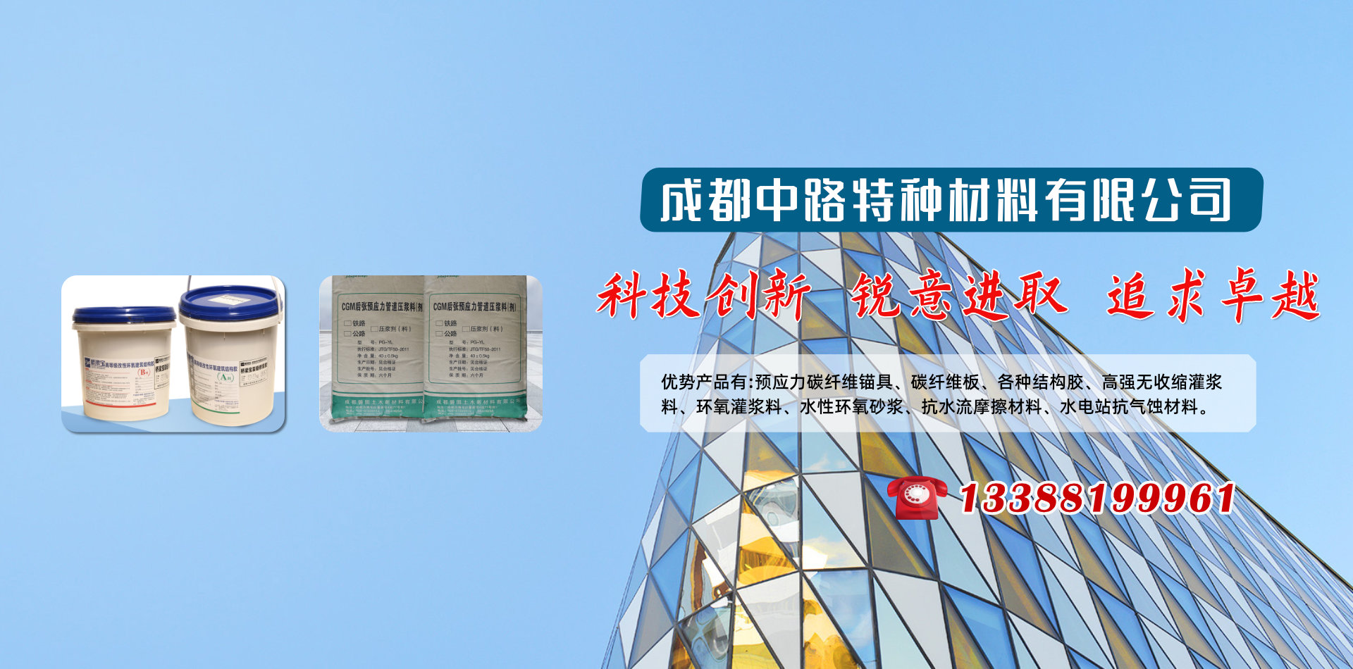 成都中路特種材料有限公司借助清華大學(xué)高分子材料學(xué)科、晨光化工研究院、西南交通大學(xué)、四川交通職業(yè)技術(shù)學(xué)院科研技術(shù)平臺成為一家集新材料研發(fā)、銷售、技術(shù)服務(wù)和施工于一體的專業(yè)服務(wù)公司,優(yōu)勢產(chǎn)品有:預(yù)應(yīng)力碳纖維錨具、碳纖維板、各種結(jié)構(gòu)膠、高強(qiáng)無收縮灌漿料、環(huán)氧灌漿料、水性環(huán)氧砂漿、抗水流摩擦材料、水電站抗氣蝕材料和研發(fā)各種特殊用途膠黏劑產(chǎn)品地處西南腹地成都,業(yè)務(wù)覆蓋四川各大中小城市、重慶、云南、昆明、新疆、西藏等區(qū)域。產(chǎn)品涵蓋各種加固施工材料、施工設(shè)備及施工配件,品牌有威士邦等aa進(jìn)口品牌,同時批發(fā)銷售國產(chǎn)高、中、低端品牌,為客戶提供全面參考。